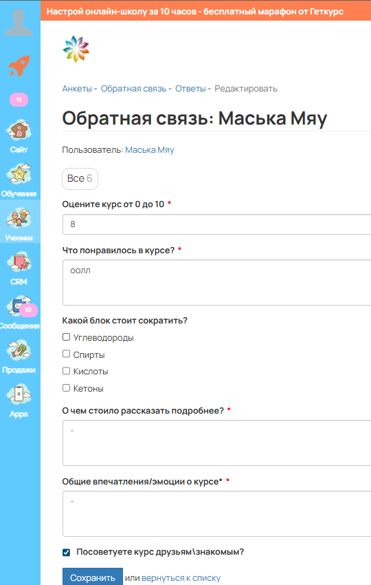 Создание анкет